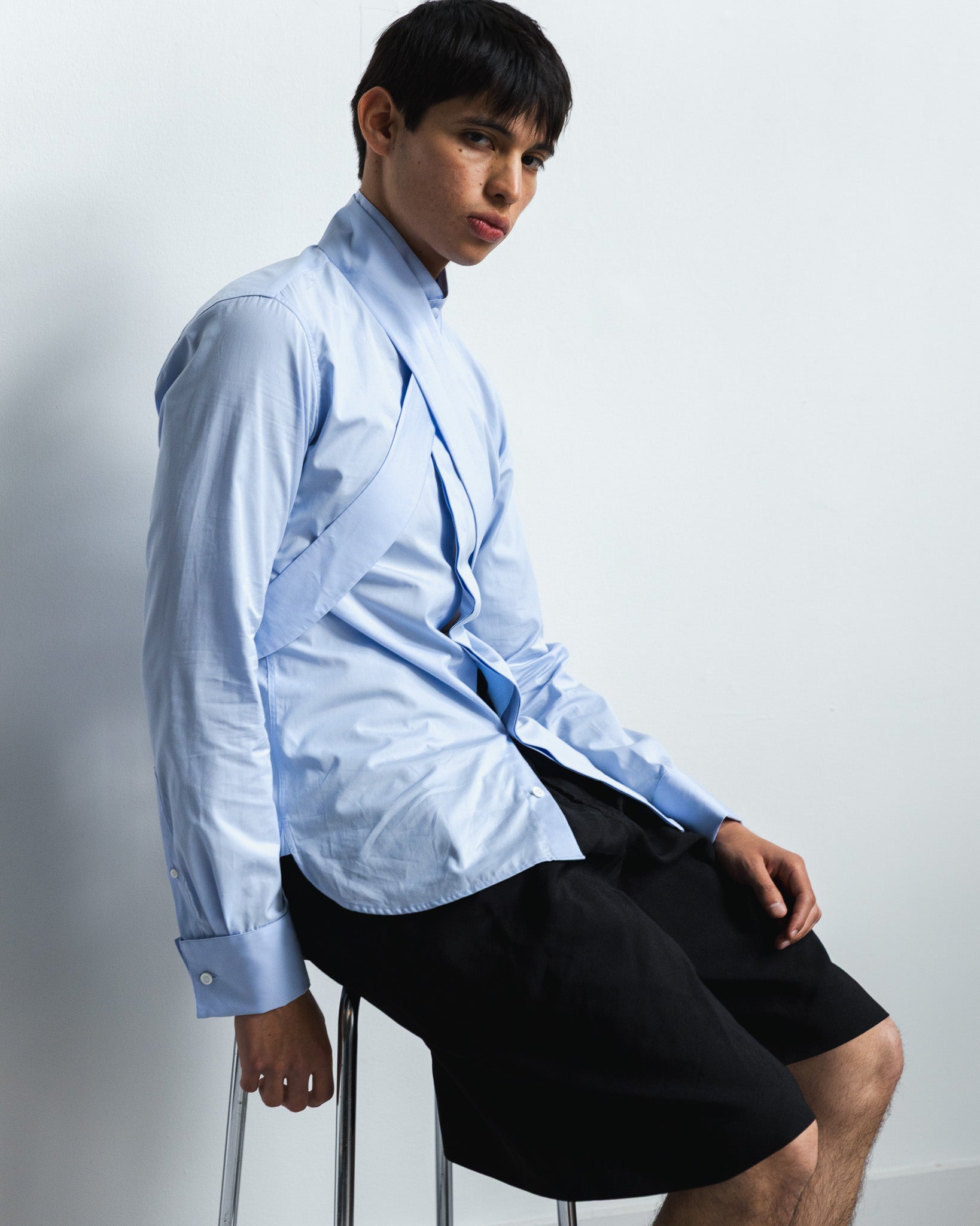That’s why, in the current season, Klausner’s voice feels relatively conservative. We still see Dries’ classic carry-over styles, such as the Pine Pants and Melbourne Sweater, as well as designs that build directly on the vision Dries himself had been shaping for decades. The Venice Jacket, built with oversized multi-side pockets to make a layered structure, pairing with its heavy wool tweed, carries the familiar Dries spirit yet feels newly defined. Alongside these pieces, there are also moments that show more of Klausner’s own touch. The Carvies Tux Bis Shirt is one of them: cut slimmer, with a slight cinched waist and French cuffs. A gentle touch of femininity permeates this shirting—an echo of Klausner’s roots in womenswear design.