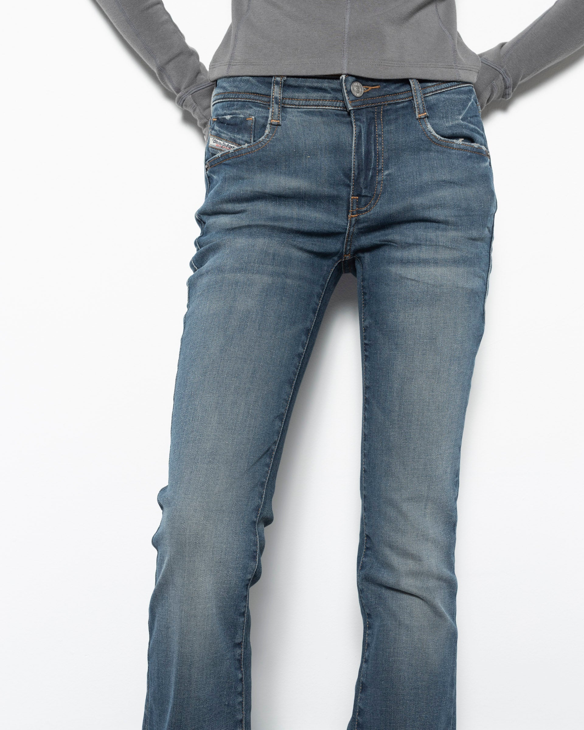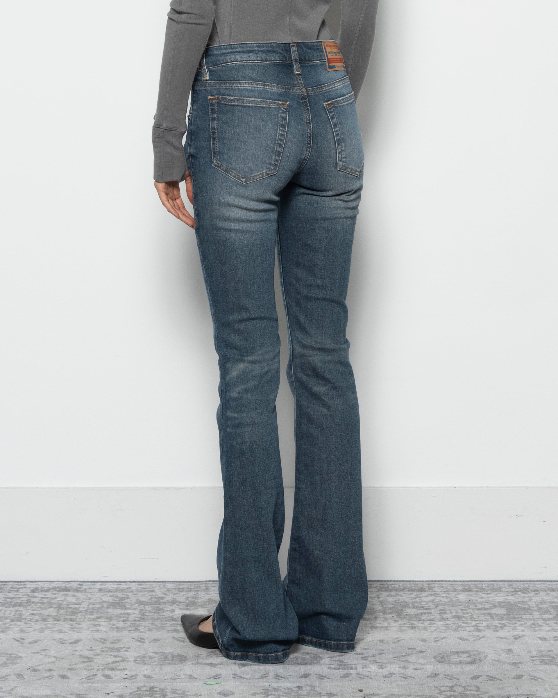 Diesel 1969 D-EBBEY Jeans in Light BlueThe 1969 D-EBBEY Jeans are a loose-fitting, mid-waisted, bootcut jeans crafted from a stretchy, cotton blend. The pair has a five-pocket construction set in a blue wash, and detailed with a zip fly and a jacron patch at the rear.