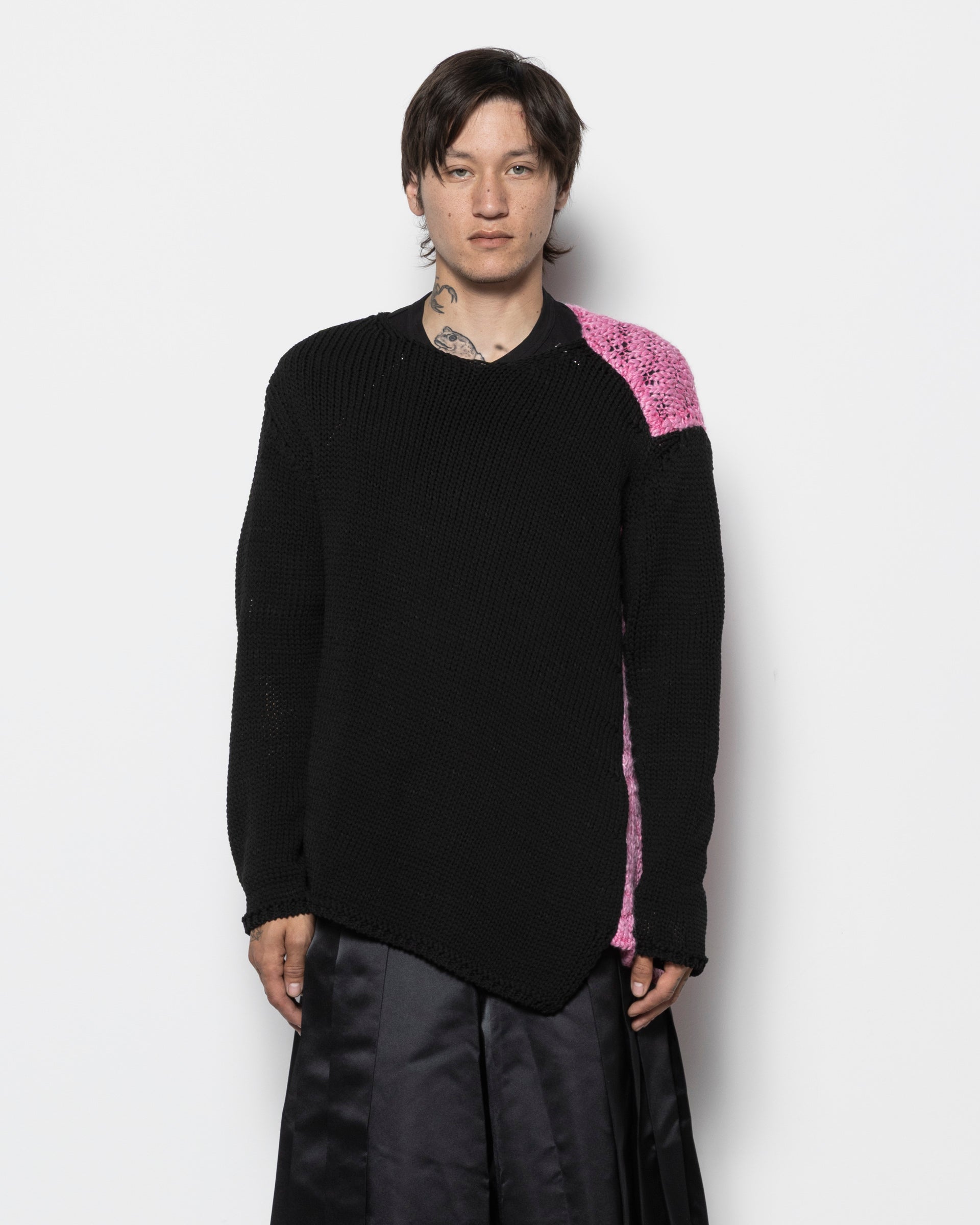 Asymmetrical Lily Yarn Sweater in Black and Pink