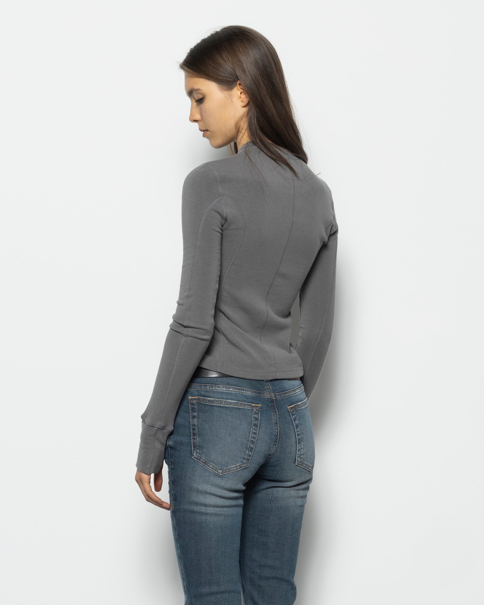 Simple Project Fitted Long Sleeve in GreyThe Fitted Long Sleeve is a snug-fit t-shirt made from a lightweight, soft cotton blended fabric. Done in a panelled construction, the t-shirt is detailed with and thumb holes.