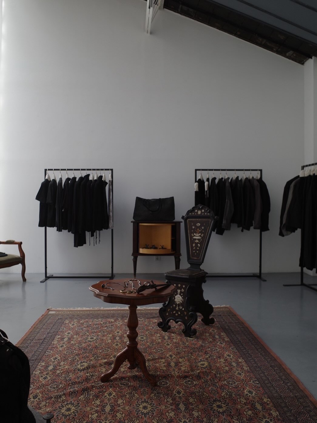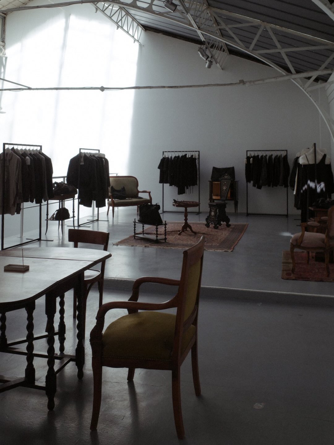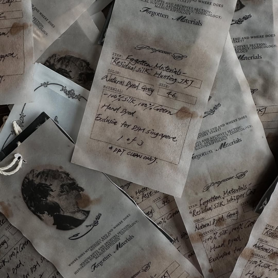 When we visited him in Paris, Ken offered a glimpse into his world. His collection was displayed alongside antique furniture sourced from local secondhand shops exclusively for his showroom. One chair, he explained, dated back to the 16th century, and he intended to ship it back to Taiwan once the showroom ended. Then, almost offhandedly, he pulled out a garment from the Forgotten Materials line. “This one’s taking forever to finish,” he admitted with a smile, noting that the fabric treatment had been done by his own mother.