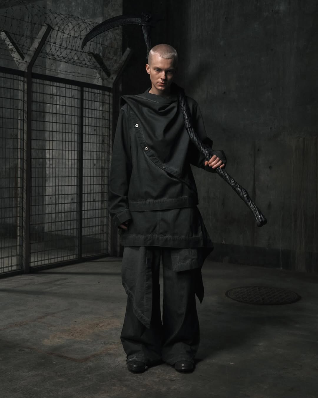 With Troubled Waters, Polo channels deeply personal references—childhood memories, manga like GTO, and archival garments he’s collected and reworked over time. Instead of traditional fashion seasons, the brand unfolds in ACTs, like chapters of a novel. Each ACT builds upon the last, continuing a story rather than resetting it.
